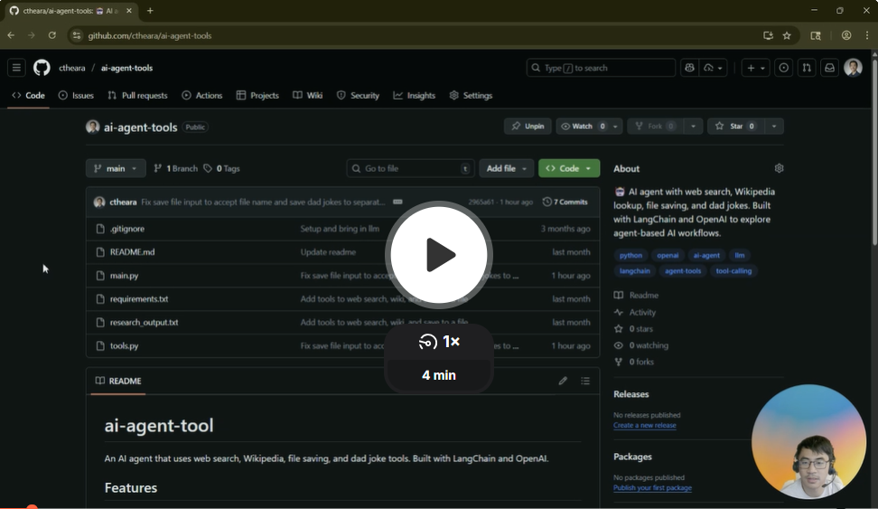 - Dad Jokes Tool - Implemented a custom tool that called an external API to get dad jokes.